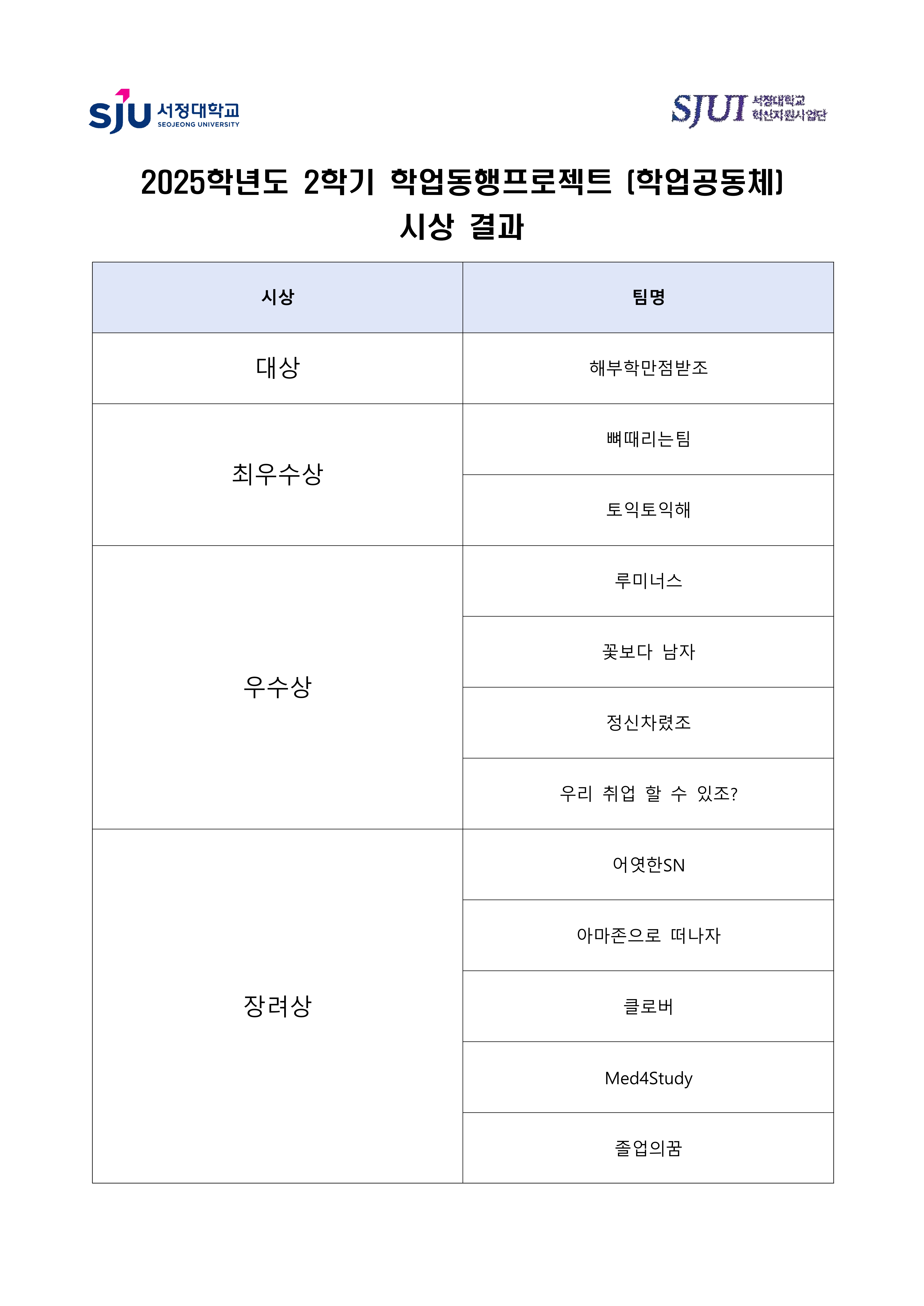 2025학년도 2학기 학업동행(학업공동체) 시상 결과를 안내 드립니다.