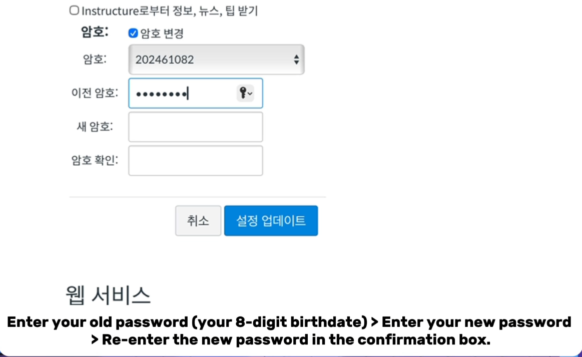 3) Chọn thay đổi mật khẩu (암호 변경)