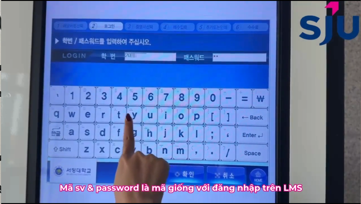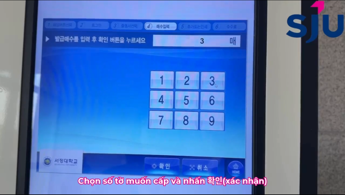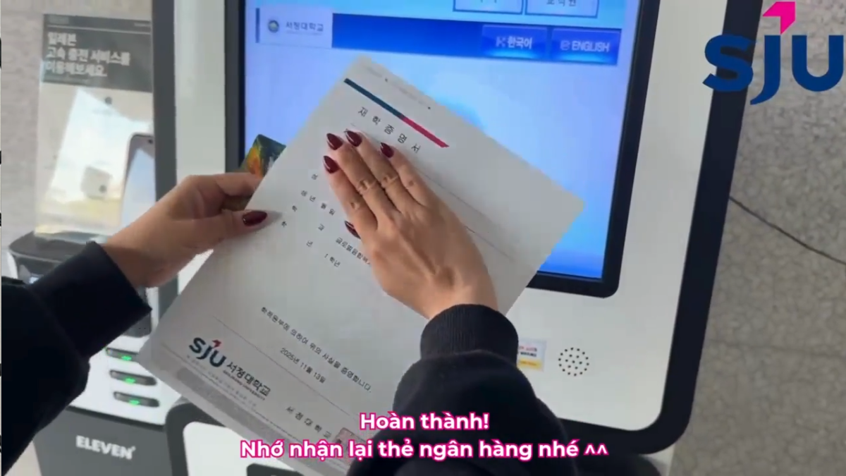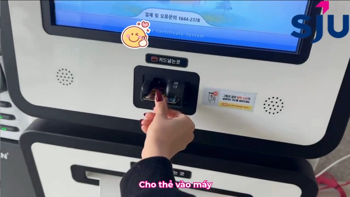 : Máy cấp giấy chứng nhận có tại: Tầng 1, tòa số 3 서관관 / Tầng 3, tòa số 3 본관 / Tầng L, tòa quốc tế 별관