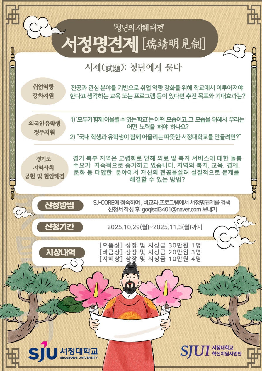 [행사일정] 2025학년도 서정명견제(瑞靖明見制) : 밝은 견해를 제시하는 제도 [청년의 지혜 대전] 안내 N