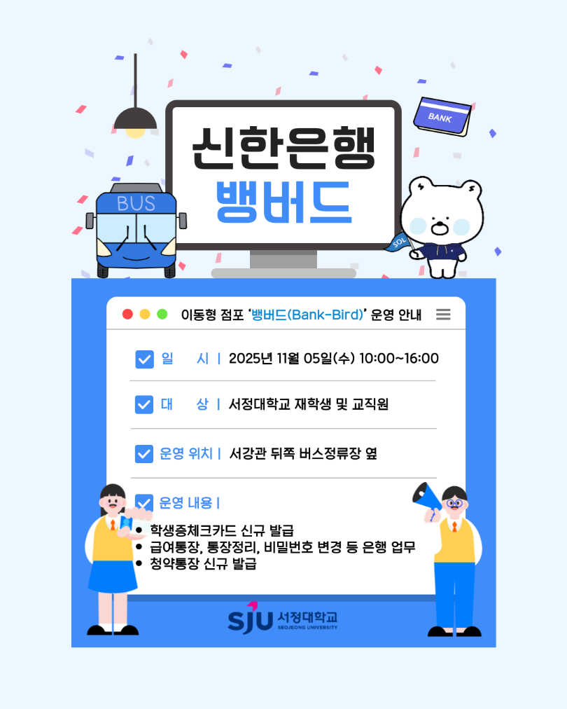 학생 및 교직원 여러분의 편의를 위한 서비스이니, 다양한 은행 업무에 적극 활용해주시기 바랍니다.