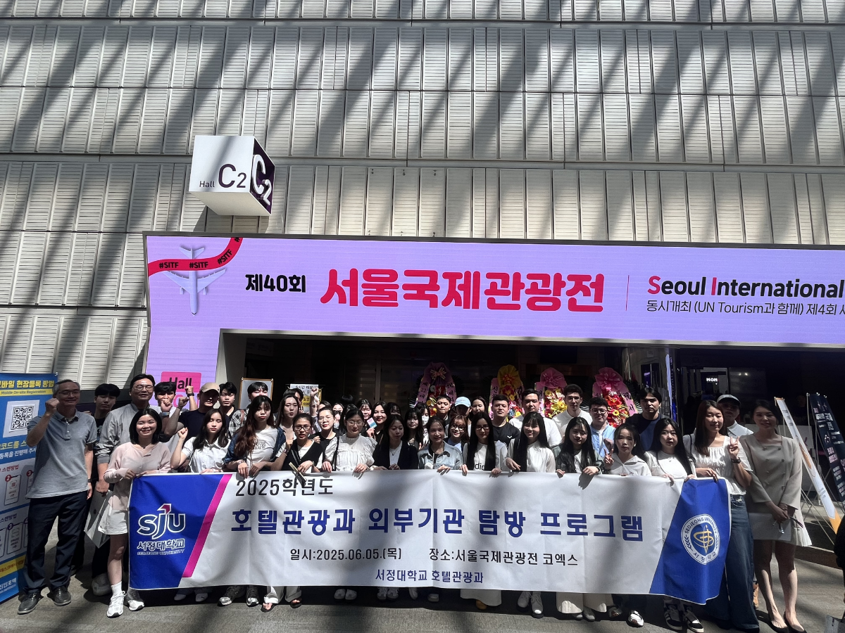 서정대학교 호텔관광학과는 6월 5일(목) 서울 코엑스에서 개최한 제40회 서울국제관광전을 탐방했습니다. 이 프로그램은 서정대학교 혁신지원사업단이 주최하고, 취업지원센터와 호텔관광과가 주관하였으며, 다양한 국가와 지역, 관광청, 호텔 및 리조트, 여행사 등 관광 관련 기업들의 정보와 서비스를 경험할 수 있는 활동이었습니다.