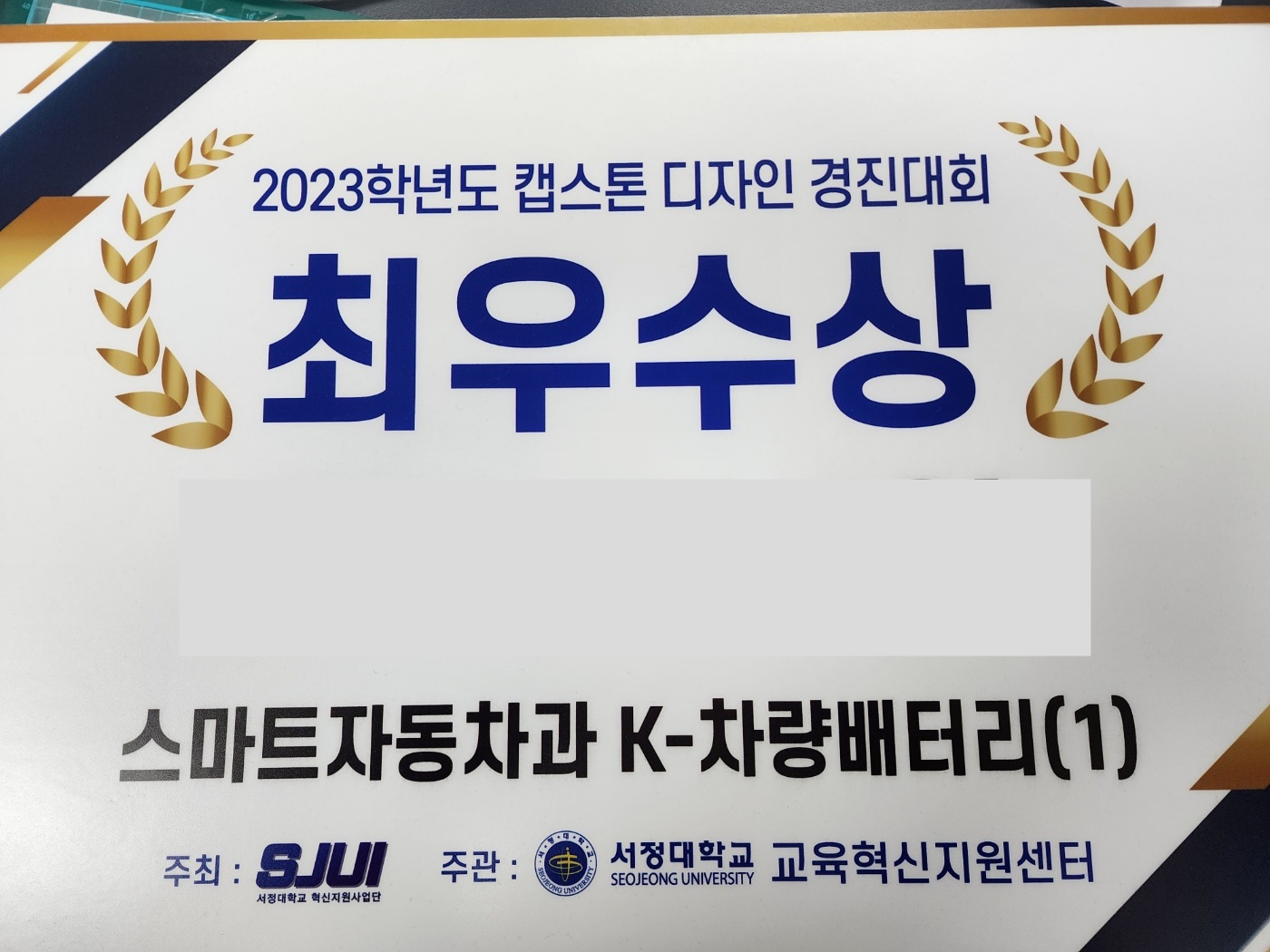 2023학년도 캡스톤디자인 경진대회 최우수상 <스마트자동차과 K-차량배터리> |
